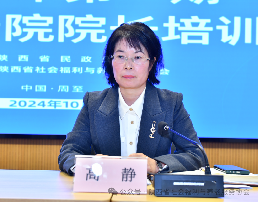 开班式上,省民政厅养老服务处处长高静代表省民政厅领导发表了热情洋溢的致辞。她指出,当前,我省60岁以上老年人口达到853万人,占全省常住人口总数的21.6%,超过全国0.5个百分点。随着人口老龄化程度快速提升,养老问题已经成为实现中华民族伟大复兴中国梦的征程中必须要着力破解好的一项重大课题。养老院院长是开展养老服务工作的“领头雁”,院长们的专业素养、管理能力和奉献精神,直接关系到养老机构的服务质量,也影响到老年人的晚年生活幸福。养老院院长既是国家和社会大爱的传递者,是养老机构的组织领导者,也是养老服务质量的守护者,老年人生命历程的陪伴者。这就要求我们正确对待养老事业发展中面临的问题和困难,牢牢把握住陕西养老服务事业发展的历史机遇,努力开拓养老服务高质量发展新局面。为了加强机构管理,提升培训质量,高静处长强调,一要提振推动养老服务发展的信心和决心。二要增强推动养老服务发展的责任感和使命感。三要提升养老服务机构综合管理能力。她要求参加培训的院长们,要带着责任学、带着问题学,将学习成果运用到养老机构的实际管理中,担当主体责任,守牢安全底线,不断推动养老机构标准化、规范化管理,不断提升养老机构的管理水平和服务质量,为提高全省养老服务质量,促进养老事业发展作出积极的贡献。