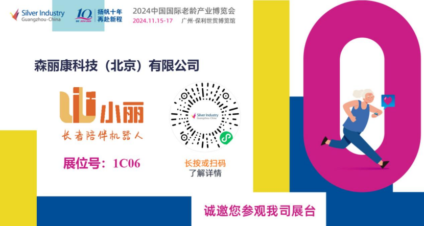 2024年11月15日至17日,第十届中国国际老龄产业博览会(SIC老博会)将在广州保利世贸博览馆开幕。森丽康科技(北京)有限公司将携“小丽—长者陪伴机器人”在1C06展位亮相,欢迎各界朋友莅临,近距离体验、感受不一样的智能陪伴。