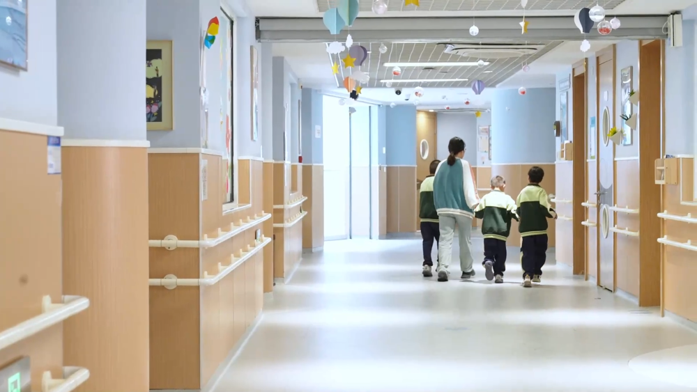 宽度约3米,比一般的走廊足足多出1米,为难以保持径直前行的脑瘫患儿留足了安全空间。