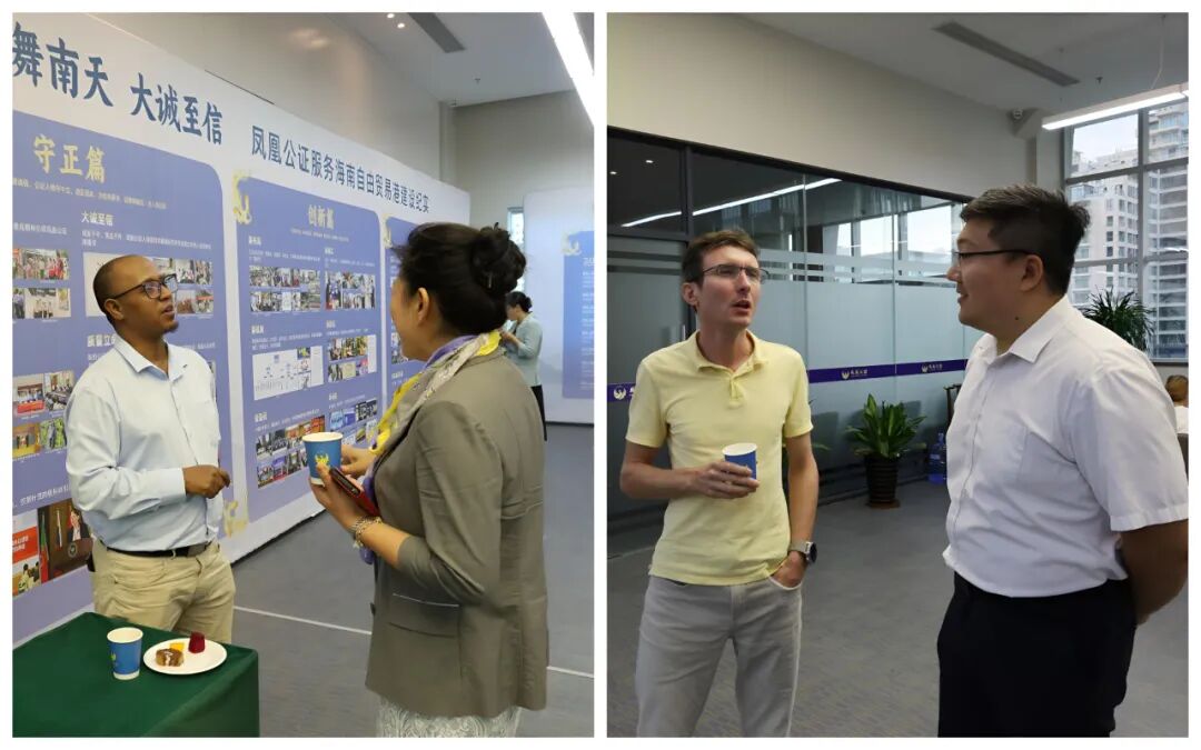 海南省司法厅副厅长王帅、三亚智库(筹)负责人黄微莉以及来自司法机关、政府部门、学术团体、高等院校、公共法律服务等领域的专业人士和消费者、消费市场主体代表参加研讨;台湾公证学会理事长谢永誌、中国委托公证人(香港)温嘉明、中国委托公证人(澳门)石立炘线上专题介绍了域外经验;在三亚生活和工作的Hebrard Marylise(法国)、ANDY(乌克兰)、Abe(埃塞俄比亚)等国际友人表达了对海南自由贸易港消费环境的期待。